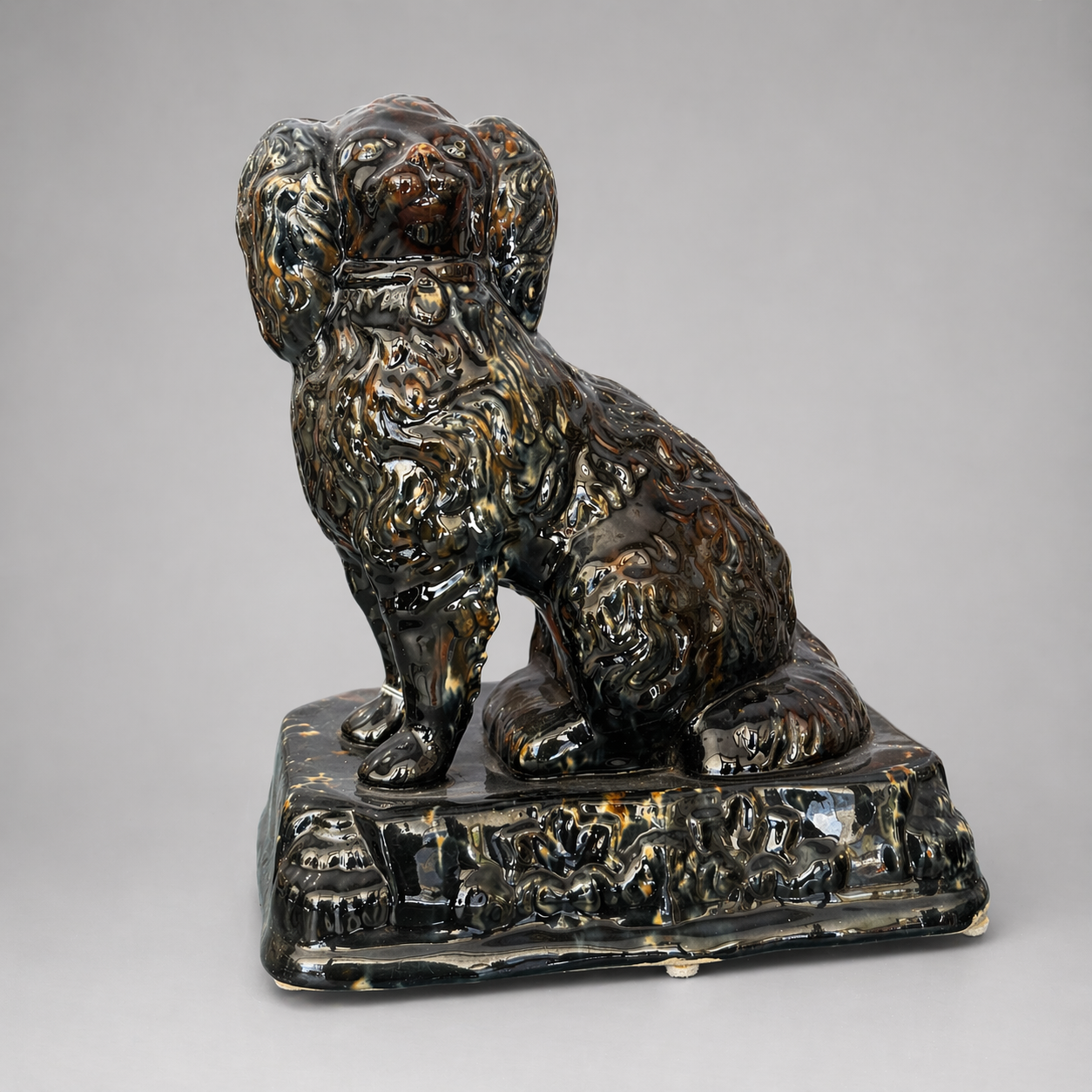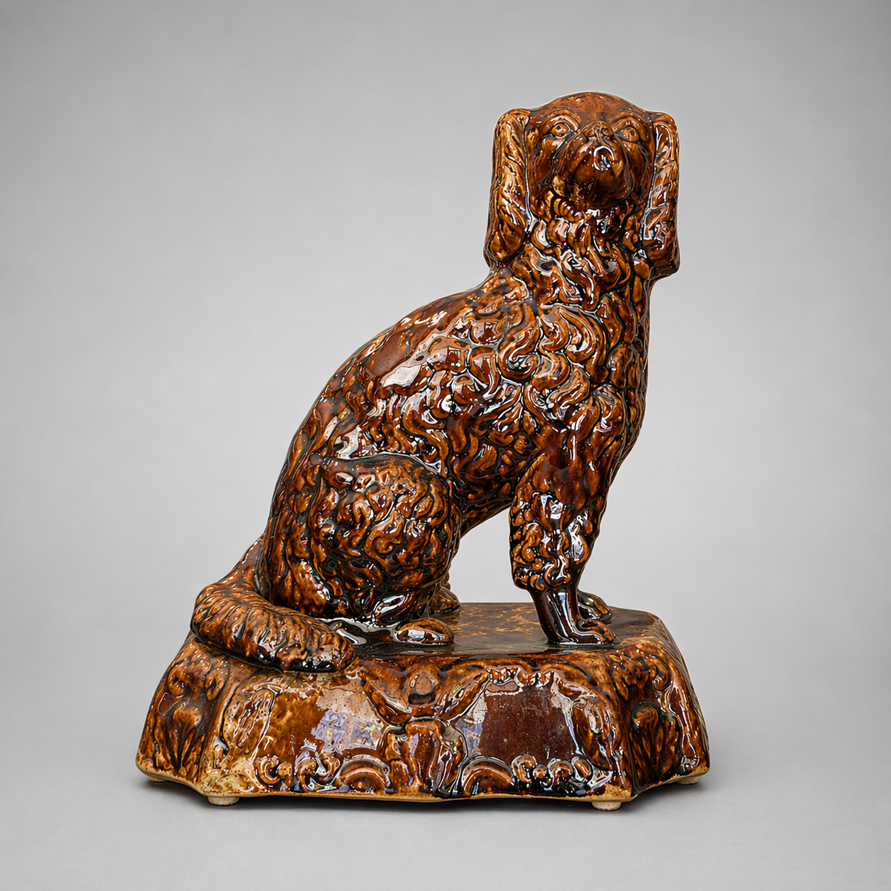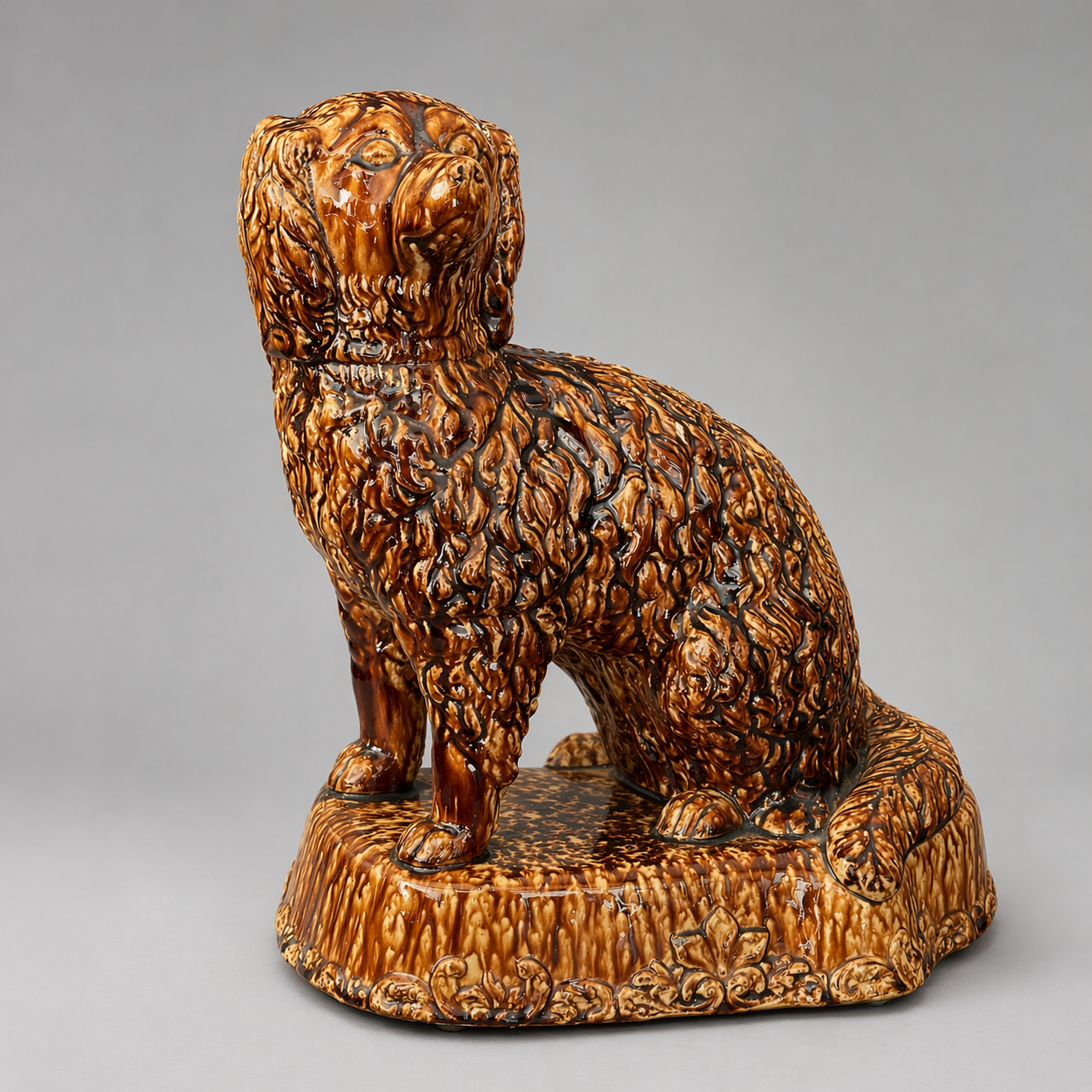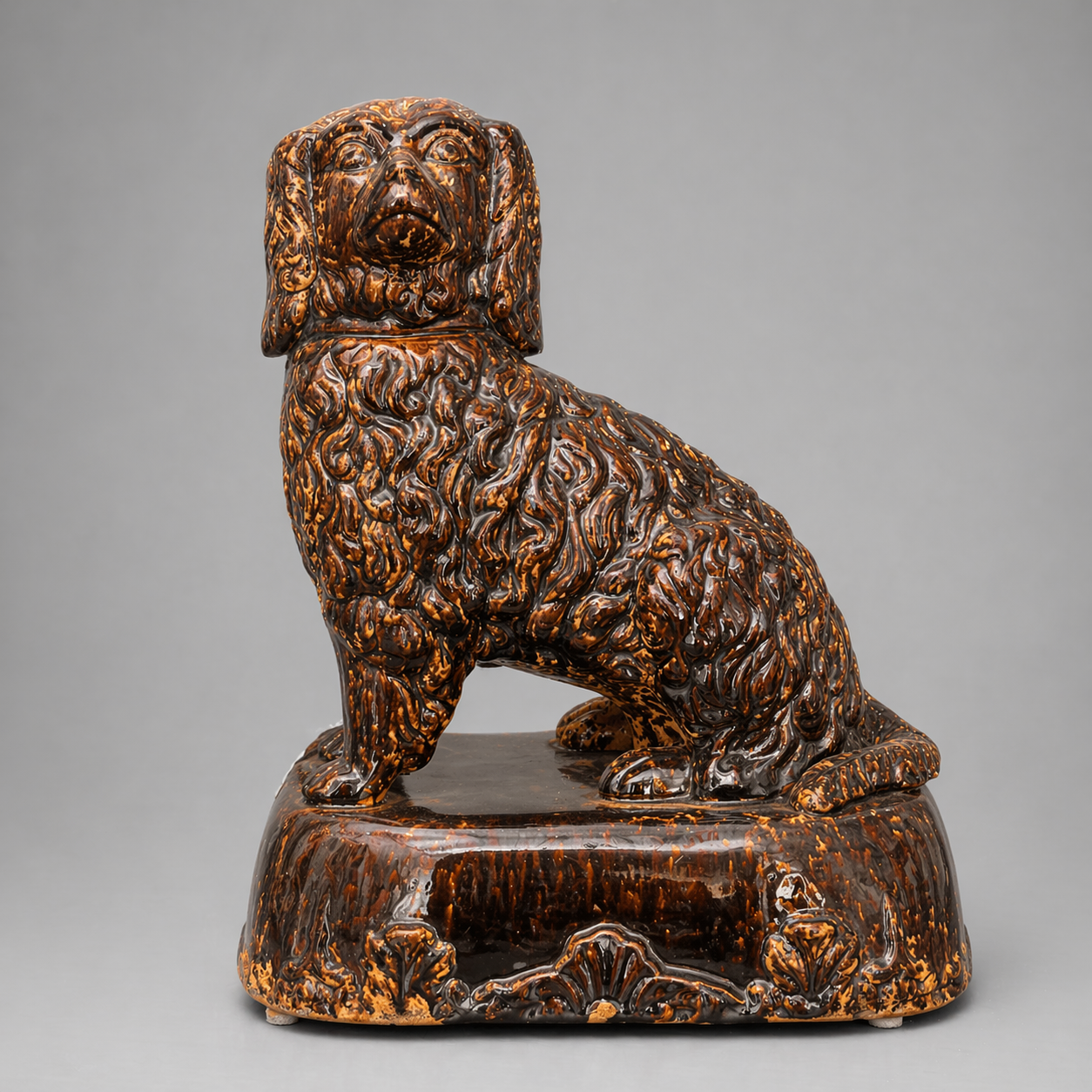 Collectors prize Bennington-type dogs for their distinctive glaze and enduring folk appeal. In particular, grouped examples such as this offer heightened visual impact. Furthermore, the range of glaze tones—from honeyed amber to deep brown—adds depth and desirability.