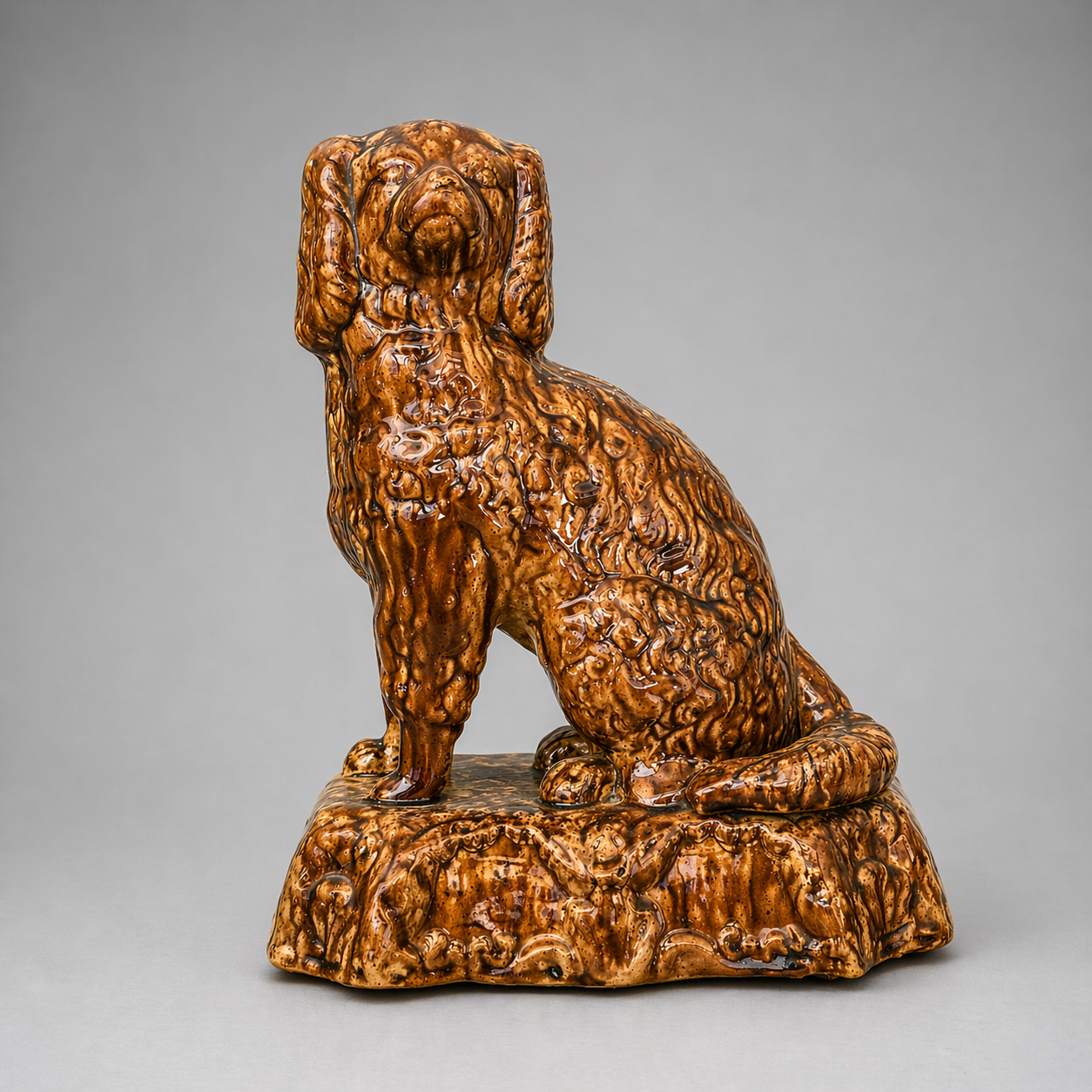 Artisans produced these figures using molded earthenware (yellowware or buff-bodied clay), a staple of mid-19th-century American pottery. They then applied Rockingham glaze, allowing it to flow and pool naturally during firing. Because of this, each piece exhibits unique surface movement and depth.