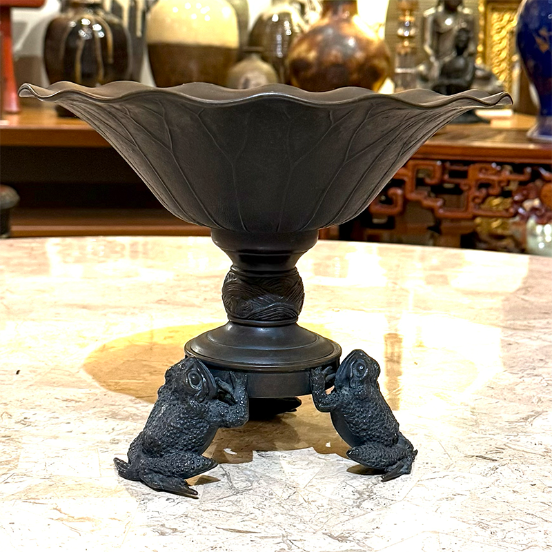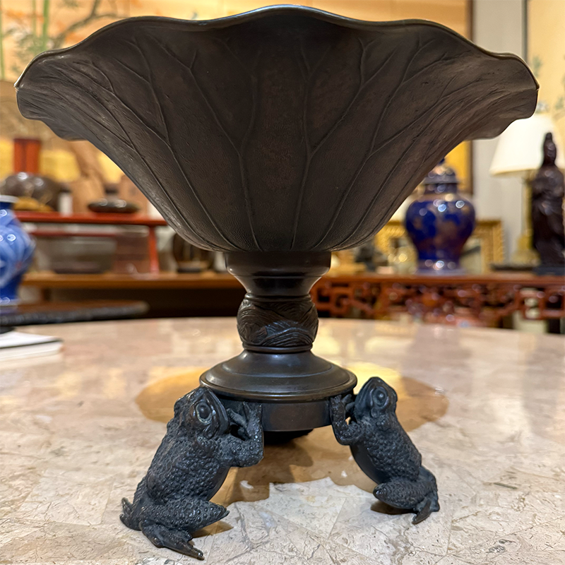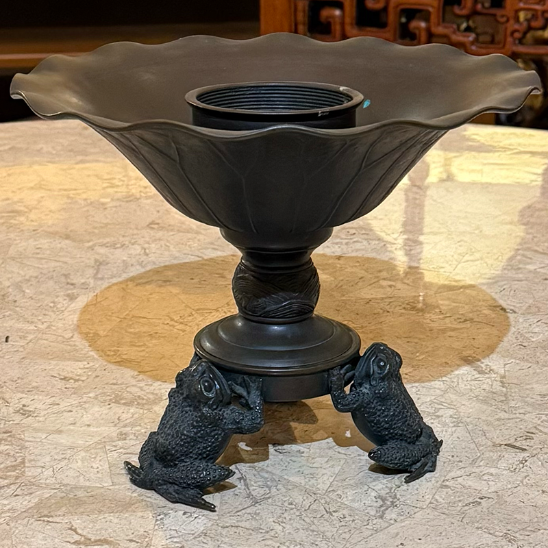 Japanese Bronze Ikebana Vessel with Sculptural Frog Base