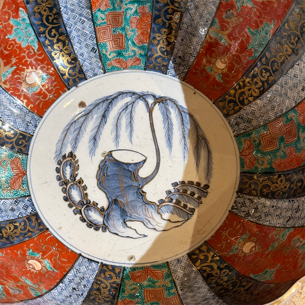 Imari porcelain developed in Japan during the Edo period and became widely admired for its bold colors and ornate patterns. Later examples continued this tradition while adapting the classic motifs for decorative export wares. The palette and decoration of this bowl reflect that enduring influence.
