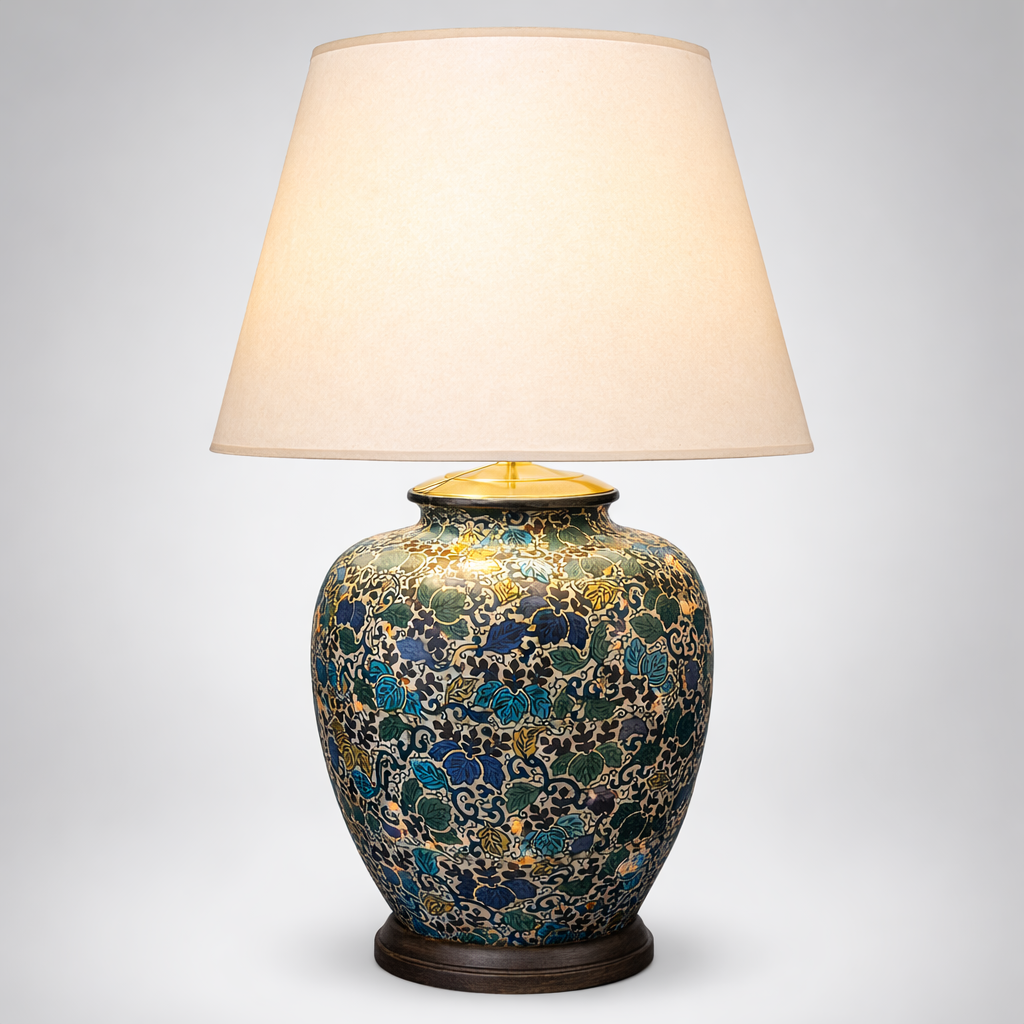 This vintage cloisonné table lamp combines decorative artistry with timeless elegance. It brings color, craftsmanship, and character to any interior setting.