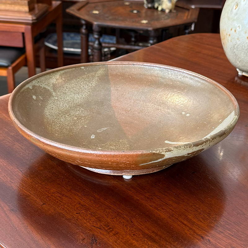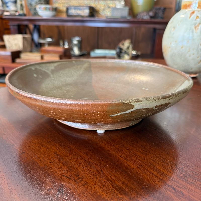 This vintage studio pottery bowl features a sculptural form and beautifully organic glaze.